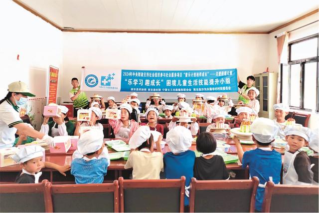 近日,宁夏义工志愿服务联合会在宁夏回族自治区西吉县沙沟乡满寺村,开展“乐学习 趣成长”困境儿童生活技能提升小组活动,志愿者带领辖区内30名儿童一起手工制作奶油水...