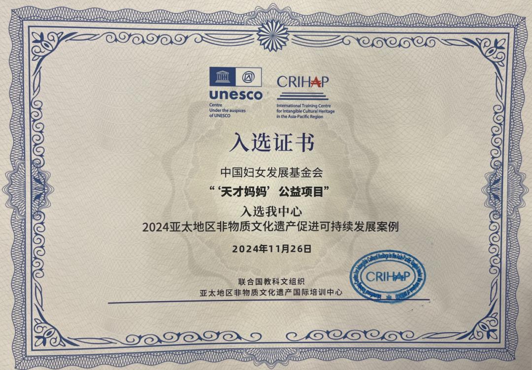11月26日,“2024亚太地区非物质文化遗产促进可持续发展”入选案例发布会在京举行,中国妇女发展基金会“天才妈妈”公益项目成功入选。作为中华文化的重要组成部分...