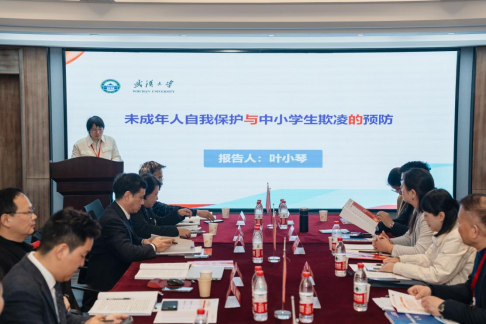 活动邀请武汉大学法学院教授、刑法教研室主任叶小琴作主题演讲;邀请湖北省高级人民法院四级高级法官张云燕、湖北省人民检察院第九检察部副主任、三级高级检察官苏永胜、湖北黄鹤律师事务所主任曹红玲、武汉大乘心理咨询中心主任贾洪武围绕校园暴力与学生欺凌现状、原因、防治措施、心理健康和未成年人保护相关问题展开展研讨。