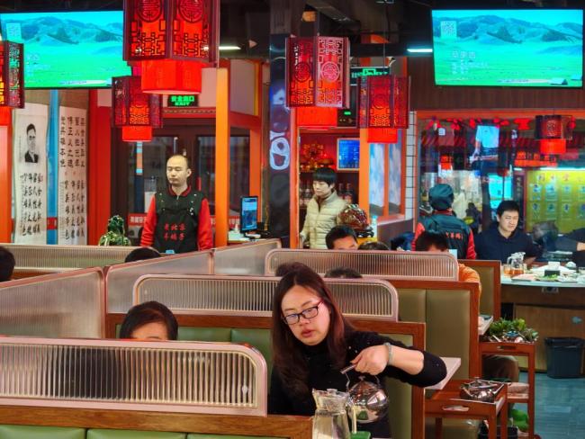 夜幕低垂,顾客们陆陆续续来了,不到晚上7点,店里的十几张桌子就座无虚席,进门处不少人开始等位。“我和朋友经常来吃,以前是因为好吃、价格实惠,现在是想来看看,店里的人过得好不好。”家住附近的市民侯振江说。