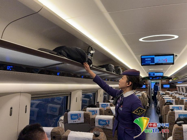 “11号车厢旅客需要延长车票。”“14号车厢空调需要调节。”列车开出不久后,刘皓的对讲机一直响个不停,她加快节奏,逐个来到旅客身边,帮大家补票和解答疑惑。