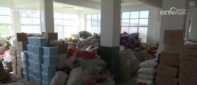 村民们居住的板房面积有限,也不能存放太多的物资,所有的物资都集中在村里的一个小学里,非常充足。