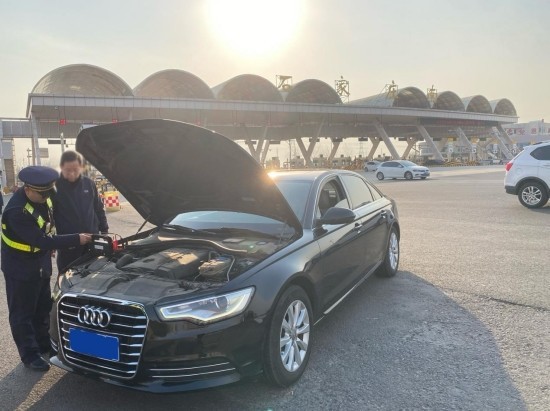 据了解,韩先生常年在安徽工作,今年处理完工作后,便带着妻儿连夜驱车赶回石家庄与父母团聚。然而,车辆行驶至石家庄南收费站附近时,突然出现故障,无法启动。正在值班的石家庄南收费站工作人员发现这一情况后,立即上前询问,并将韩先生一家引导至安全区域。随后,工作人员对车辆进行简单排查,判断车辆故障原因是电瓶亏电。工作人员迅速从暖心服务岗取来搭电线,熟练地帮助韩先生将车辆成功启动。