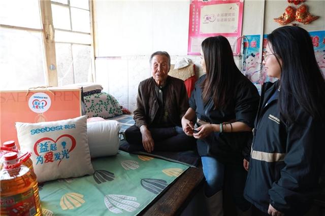 在关注学生学习照明环境的同时,视贝科技还心系当地的孤寡老人。他们深知这些老人生活的艰辛与不易,因此特别准备了米面粮油等生活物资,为他们送去了一份实实在在的关爱。