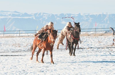 飞奔中,“伤员”在战友协助下跃上另一匹马;巡逻时,战士手牵缰绳稳稳站在马背上瞭望远方;火圈、障碍物被勇敢的战士和骏马一跃而过……