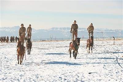 骑兵连正在雪中巡逻。