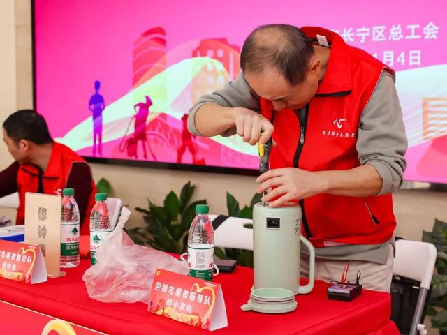 当天下午,点亮心愿公益嘉年华集市志愿服务活动在区工人文化宫1楼大厅同步举办。活动汇集了长宁爱心企业和长宁为老服务示范点、劳模志愿者服务队等组织,社区居民和职工不仅可以在公益集市上淘好物,还可以享受到维修、义诊、理发、心理健康咨询、金融产品服务、为老服务政策咨询等丰富多元的便民服务。