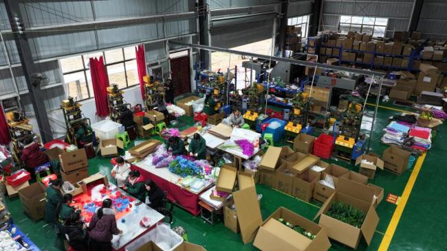 为了带动更多的人脱贫致富,杨淑亭在县城及周边乡镇设置了20余个花卉组装代理点。在这些“扶贫车间”里,共有400余人参与花卉组装,人均月收入3000余元。
