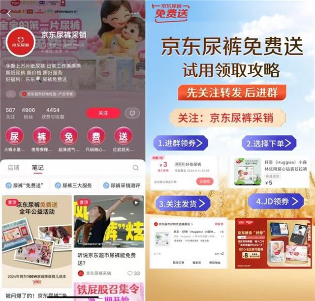 同时,参与“京东尿裤采销”小红书账号发起的小红书种草、群试用装派发等线上互动活动,同样可以获得更多免费送机会。用户关注京东尿裤采销后,可进群领券,下单并发货后,还送尿裤优惠券。