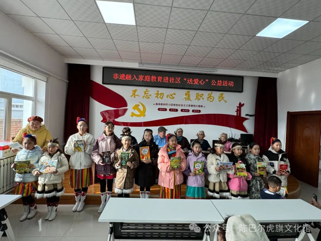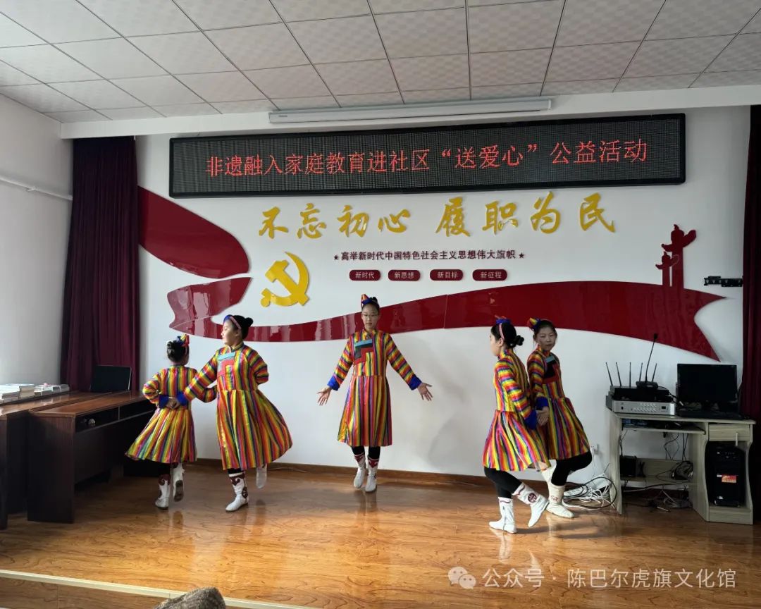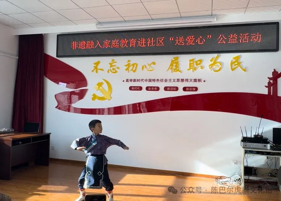 为了进一步传承和弘扬中华优秀传统文化,提高辖区居民对非物质文化遗产的认识,将非遗传承更好地融入现代家庭教育实践中,营造全社会共同关注、保护、传承非物质遗产文化遗产的良好氛围。11月3日,陈巴尔虎旗文化馆携手非遗传承人们深入到苏优勒社区,共同开展了非遗融入家庭教育进社区“送爱心”公益活动,在非遗传承人与社区民众的紧密互动中,非物质文化遗产得以传播,大众对“非遗”有了更深的认识与学习机会。