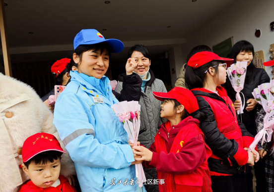 种植活动结束后,社区还特别安排了温馨的献花环节。小小志愿者们从鲜花墙上取下美艳的花束,双手捧到女性家长面前,并送上真挚的节日祝福。“妈妈,您辛苦了!”“奶奶,祝您节日快乐!”稚嫩的童声饱含着浓浓的爱意,现场洋溢着温馨感人的氛围。