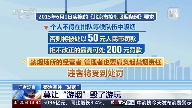 据了解,按照《“健康中国2030”规划纲要》,要全面推进控烟履约,加大控烟力度,运用价格、税收、法律等手段提高控烟成效。相关控烟法律研究者表示,目前“游烟”的治理面临的管理难的情况,需要更加明确管理责任方。据今年3月北京市最新调整的政府部门职责权限,控制吸烟方面的6项行政处罚和与之相关的行政检查职权为区卫生健康委行使。