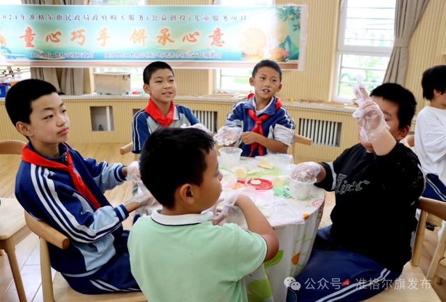 中秋节主题节日活动现场,纳林小学学生在一起做月饼。贺润/摄