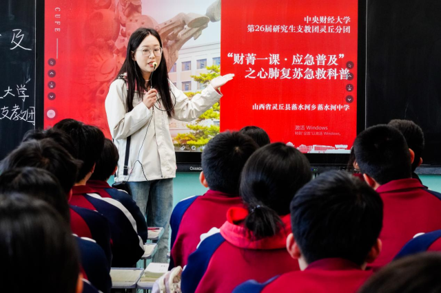 考虑到乡村地区急救资源匮乏,学生的自救互救能力关乎生命安全,中央财经大学研支团灵丘分团为学校引进了“财菁一课·应急普及”系列课程。在“沉浸式、立体式、场景式、互动式”的课堂中,研支团结合现场操作、实际演练、小组竞答等多种教学方式,帮助学生掌握急救技巧,提升救助能力。“财菁一课”内容,还涵盖 “爱国爱党·思想引航”“小马财经·财商启蒙” 等多个板块,计划进一步在灵丘县推广。