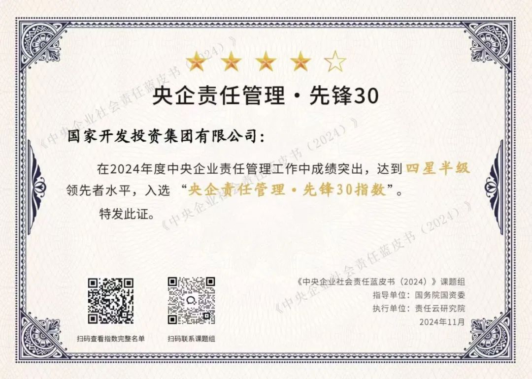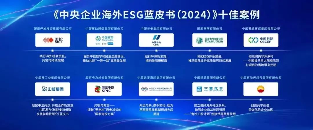 活动现场解读并发布了中央企业社会责任系列蓝皮书(2024)。国投集团报送的《践行绿水青山就是金山银山理念,为建设美丽中国贡献力量》《践行海外社会责任,共筑可持续发展》《责任驱动,创新引领——打造具有国投电力特色的ESG管理体系》分别入选《中央企业社会责任蓝皮书(2024)》《中央企业海外环境、社会及治理(ESG)蓝皮书(2024)》《中央企业上市公司环境、社会及治理(ESG)蓝皮书(2024)》。其中,《践行海外社会责任,共筑可持续发展》获评中央企业海外ESG十佳案例。