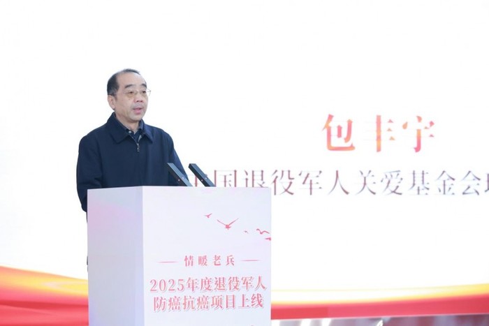 包丰宇在致辞中表示,“退役军人防癌抗癌公益项目”作为退役军人事务部“情暖老兵—为退役军人排忧解难”专项行动的重要组成部分,由中国退役军人关爱基金会、中华慈善总会携手中国人寿保险(集团)公司等多家中央保险企业共同支持,旨在发挥整合优势,为退役军人排忧解难,通过为退役军人家庭提供防癌抗癌专属保险产品,并向特困低保退役军人家庭免费捐赠,有效降低了退役军人及其家庭因病致贫、因病返贫的风险。项目运行两年来,据统计,已有55.7万名低保特困退役军人免费申领办理了该保险产品,总价值约2168万元。累计受理低保特困退役军人申请赔付的有效案件1208件,赔付金额1300余万元,让退役军人切实感受到来自党和政府以及社会爱心力量的关怀与温暖。