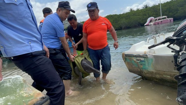 糙齿海豚受伤搁浅 三亚警民携手救助