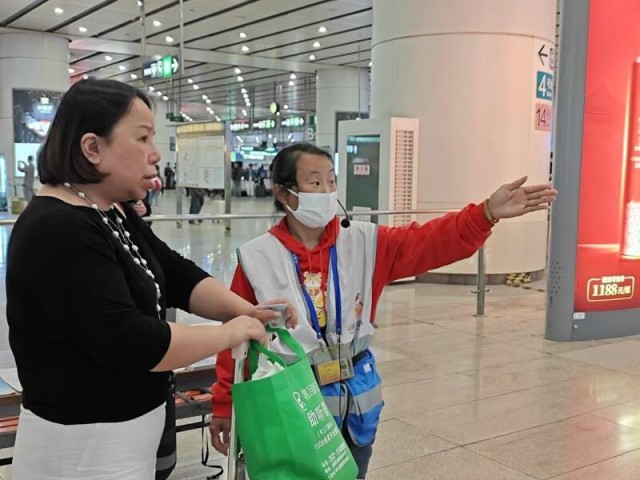 市重点站区管委会南站办工作人员介绍道,“五一”假期,每日有14名志愿服务协会志愿者在地下换乘大厅和北广场岗亭为旅客提供服务,同时协调丰台区每日支援20名文明引导员驻站服务。给志愿者配备的旅客服务物资,都是基于长期服务旅客的经验,针对行李破损修补的、旅客受伤生病的、应急通讯求助的等等,并增加了指路条,天气转热,还将配备解暑用药,适时提供绿豆汤,为旅客出行提供保障和便利。