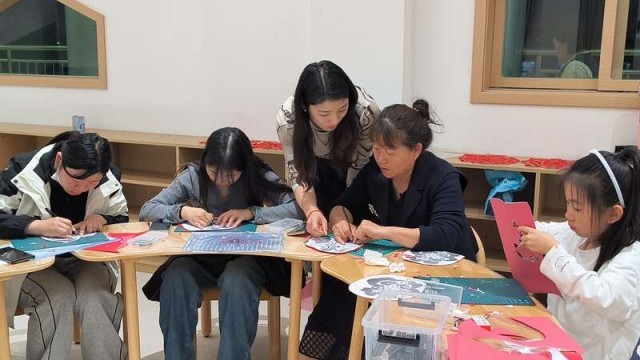周口市青年夜校“非遗剪纸班”课堂上,周口市刘氏剪纸非遗传承人刘秀华正在指导学员。团周口市委供图
