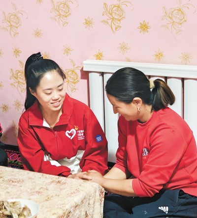 高淑贤(左)在家访。