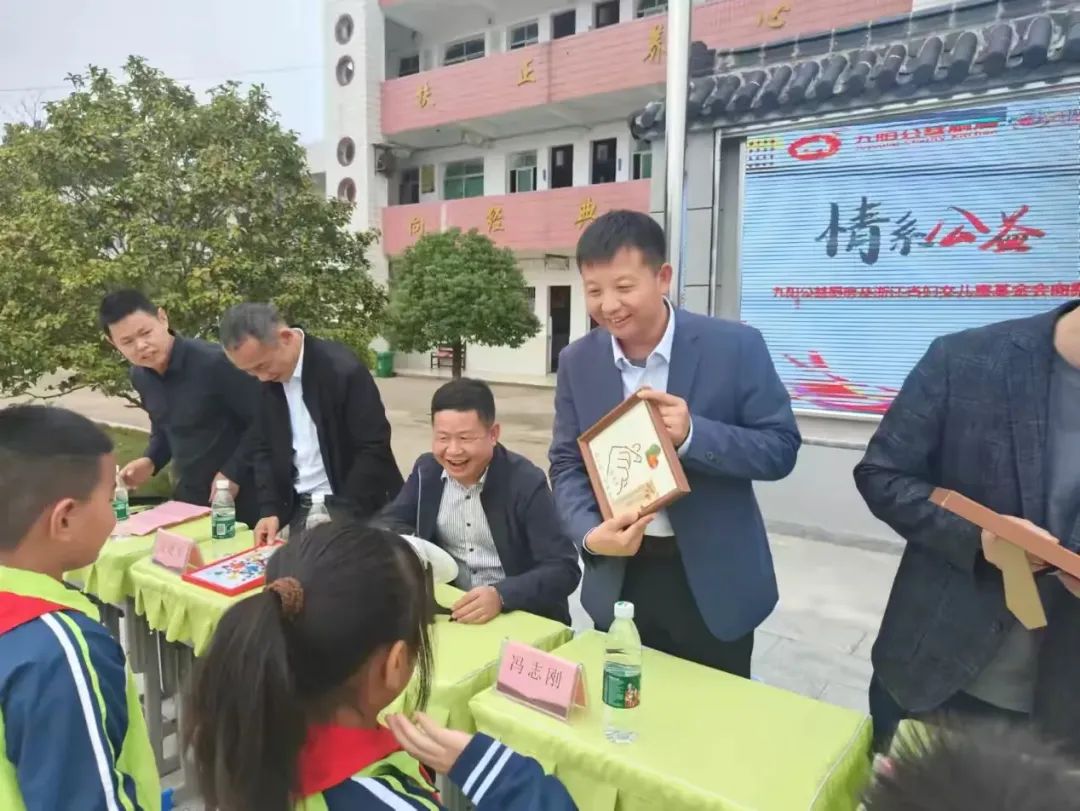 浙江省妇女儿童基金会副理事长、秘书长冯志刚,九阳公益基金会副秘书长黄晖,江西省鄱阳县教体局党委委员、副局长陈太火,浙江省妇女儿童基金会副秘书长张馨之,九阳公益基金会项目经理骆可放,江西省鄱阳县教体局党委委员黄东阳,响水滩乡中心学校党总支书记吴建宝、校长操新国,及项目支持的其余四所学校校长出席捐赠仪式。