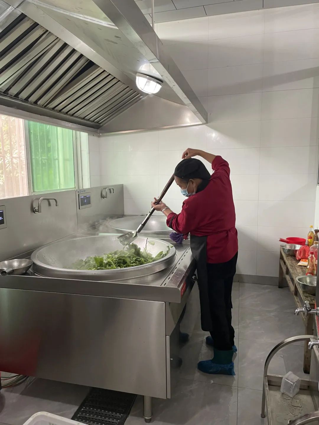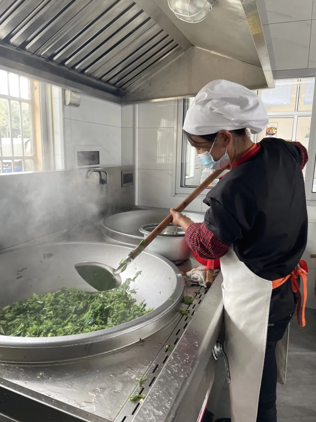 负责响水滩乡中心学校厨房工作的阿姨开心地说:“托你们的福,新炒锅很好用!有了新设备,现在都不用添柴烧火了!炒菜速度变快了,孩子们都能吃上热饭热菜!”
