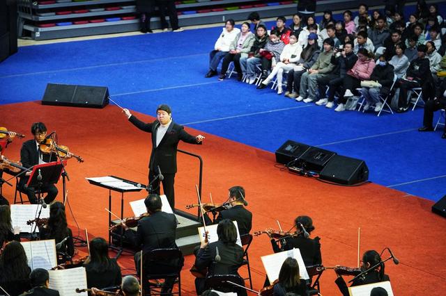 当晚音乐会除演奏涵盖交响乐、歌剧音乐、芭蕾音乐、电影音乐等多种音乐类型的中外名曲之外,中国爱乐乐团还带来了代表性的乐器展示环节,通过数段耳熟能详的曲调,向在场师生展现了弦乐组、木管组、铜管组和打击乐组等各个声部、各种乐器的不同音色和特点,让师生们更加深入地了解和欣赏交响乐的独特魅力,也激发了师生们对音乐艺术的兴趣。