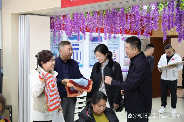 与会代表来到垡头街道养老服务中心,详细了解中心的空间布局、设备设施、医疗保障与生活服务等情况,并就下一步工作提出优化建议。大家还参观了养老服务中心的巧娘工作室,近距离感受编织技艺之美。