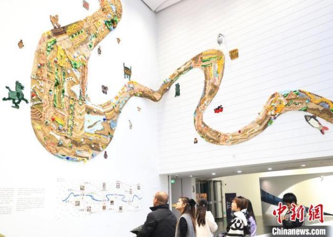 。当日,“奔流的舞姿:艺起织造母亲河”公益项目艺术展在银川当代美术馆正式对公众开放。该项目汇聚了黄河两岸200余位织手的巧作,按照黄河特点和视觉审美拼接和织造,织造出一个极具视觉效果的“大河”,通过艺术的桥梁,展示奔涌黄河的优美舞姿和不息精神,同时激发社会各界对黄河生态保护的共识与行动。中新社记者 于晶 摄