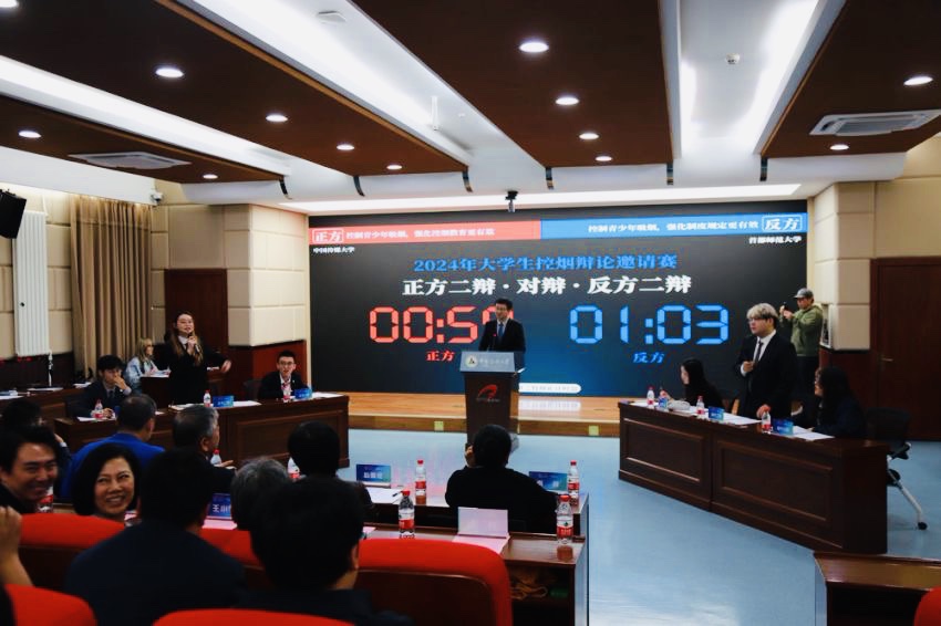 2024年大学生控烟辩论邀请赛由北京市卫生健康委员会、北京市爱国卫生运动委员会办公室主办,自今年7月份启动以来,来自全国7个省市,包括北京大学、清华大学、中国人民大学、北京师范大学、西安交通大学、国际关系学院、武汉大学、中国政法大学等24所高校积极组队参赛。(记者刘尚君)