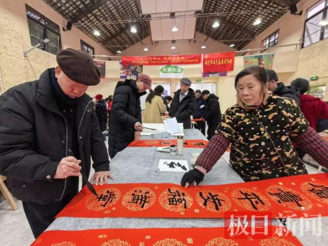 “先生,我儿子今年住新房,麻烦写四副对联!”70岁的泉山口村村民俞桂清好不容易挤到桌前,笑着请求道,“现场写的春联字儿漂亮、福气足,新房和老房都贴上,最喜庆了!”书法家当即挥毫,满足了她的心愿。捧着墨香未干的春联,俞桂清喜气洋洋。