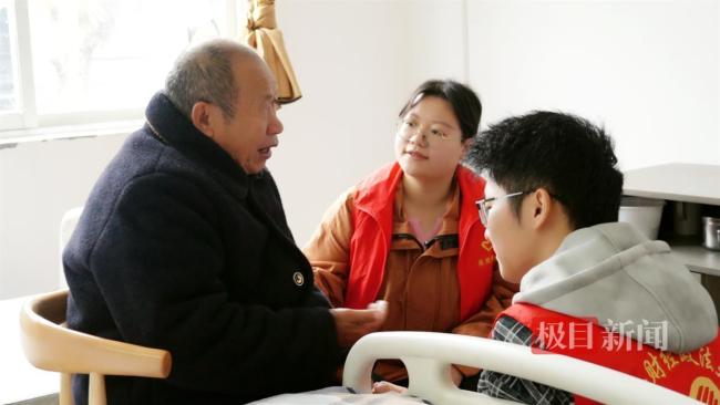 房间内,志愿者们轻柔地为老人剪指甲、耐心铺床,与老人畅聊往昔今朝,欢声笑语使福利院充盈着温馨,如冬日暖阳照亮这方天地。