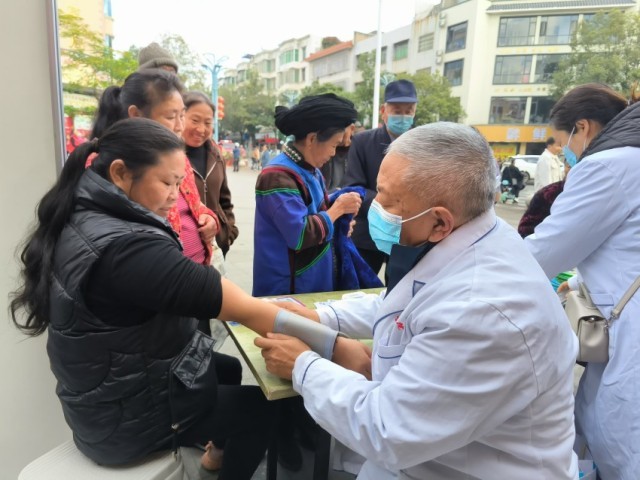 德昌医疗服务队正在为群众测量血压。余心蕊摄