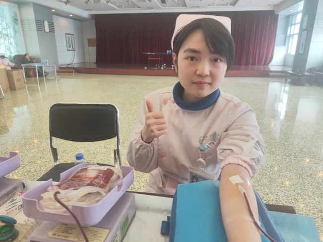 人群中,有一位年轻的身影尤为引人注目,她是医院病员服务中心的导诊护士朱嘉绮。27岁的她从2018年至今已献血8次,献血量达2500毫升,是位名副其实的“献血达人”。朱嘉绮说,自己第一次献血是在19岁时,因为学医的缘故,非常清楚无偿献血对健康适龄人群来说无损健康,便一次次坚持了下来。日常的导诊工作中,她时常与患者接触,更能体会健康对于患者及其家庭的重要意义,“能通过实实在在的方式帮助病人,我特别有成就感,只要身体允许,我会一直献下去。”