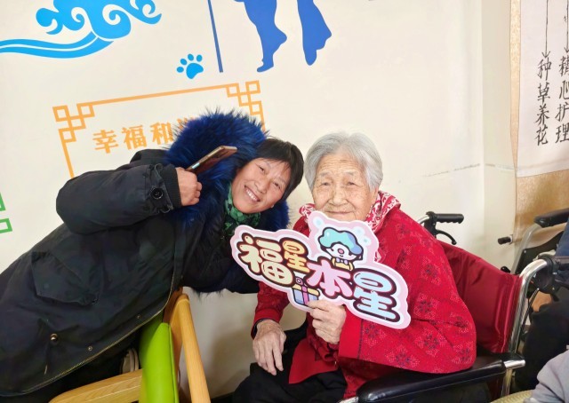 敬老院里传来阵阵欢声笑语。一群年轻人和老人们三三两两地聚在一起,大家脸上都洋溢着笑容。
