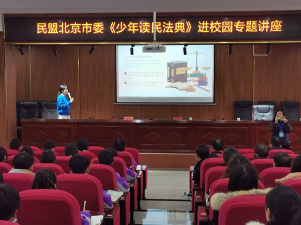 启动仪式后,民盟北京市委特邀嘉宾、北京市律师协会女工委副秘书长、北京市昌平区政协委员、北京市中盾律所执行主任杨筝为毕节八中初二年级学生带来了《民法典》专题讲座。