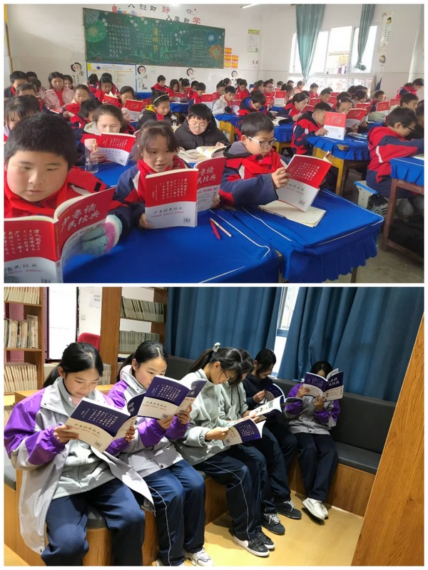 毕节市七星关区亮岩镇中心校和毕节八中学生阅读《少年读民法典》。