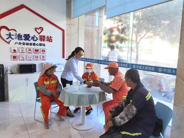 为了履行央企社会责任,在中国金融工会的号召下,中国再保旗下中国大地保险在全国范围启动“户外劳动爱心驿站”建设行动。此次揭牌的是中国大地保险首家户外劳动者爱心驿站,按照有统一的标识名称、有合理的站点布局、有健全的服务设施、有完善的服务功能、有规范的管理制度、有手机地图可查的“六有”标准建设。中国大地保险威海中心支公司还对全体员工开展培训,确保充分知晓驿站功能,遇到高温、雨雪天气时,主动邀请户外劳动者到驿站休息饮水或提供雨衣,解决“吃饭难、喝水难、休息难、如厕难”等现实问题,积极传递社会关爱和温暖。