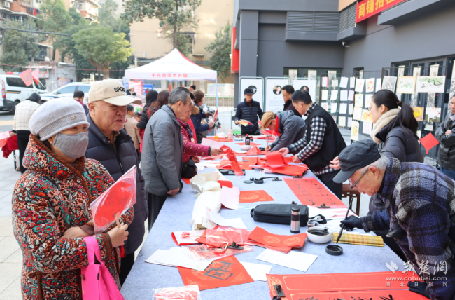 荆楚网(湖北日报网)讯(记者何鹏 通讯员蒋纯英)“冬至大如年,人间小团圆”。12月21日正值冬至,江汉二桥街道知音西苑社区联合玫瑰里携手湖北省书法家协会、汉阳区书画家协会、江汉大学美术学院和尚丘艺术在北广场举办了一场书画、美育进社区