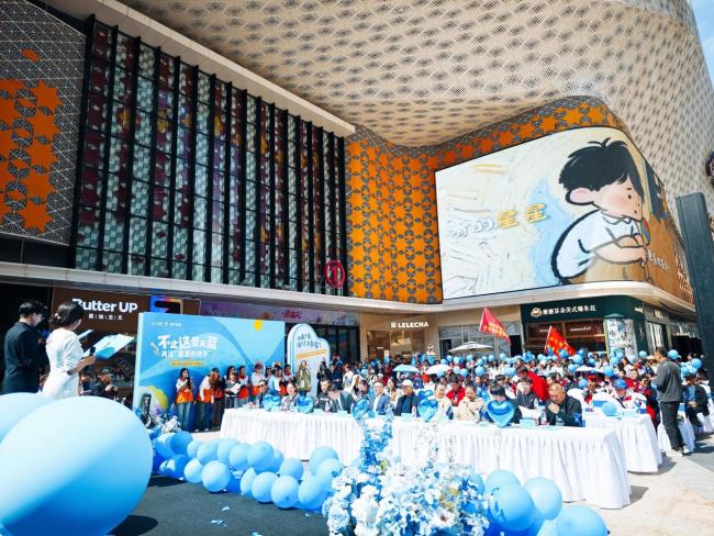 当日,蓝丝带与蓝气球在主题公益活动举办地西宁海湖万达广场汇成希望的海洋。全场人员手持蓝气球,发出关爱倡议:“尊重每一颗星,消除偏见与歧视。接纳每一种不同,传递善意与温暖。守护每一份期待,给予陪伴与支持……”