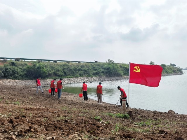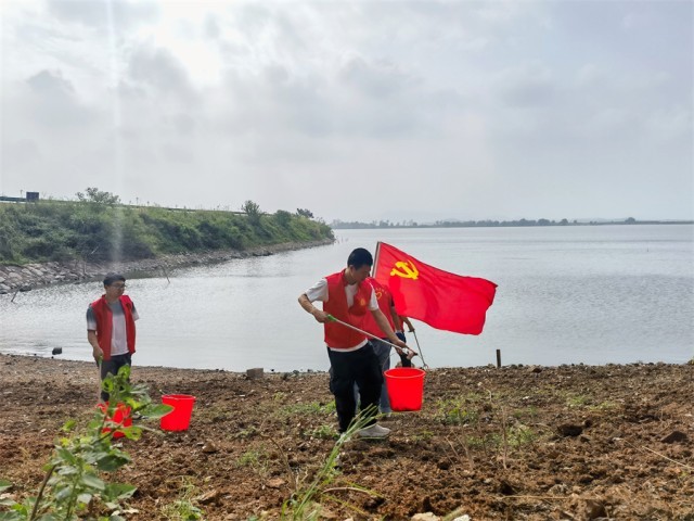 东至县香隅镇志愿者在太泊湖岸开展清白行动。赵玲玲摄