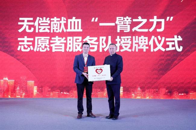 现场,湖北省楚商联合会无偿献血“一臂之力”志愿服务队也正式授牌成立。武汉血液中心相关负责人表示,随着活动的开启,相信会有随着越来越多的爱心企业加入这项公益行动,同时也希望带动更多的爱心单位和个人加入挽臂献血的行列,传递正能量,让临床病患重获新生。