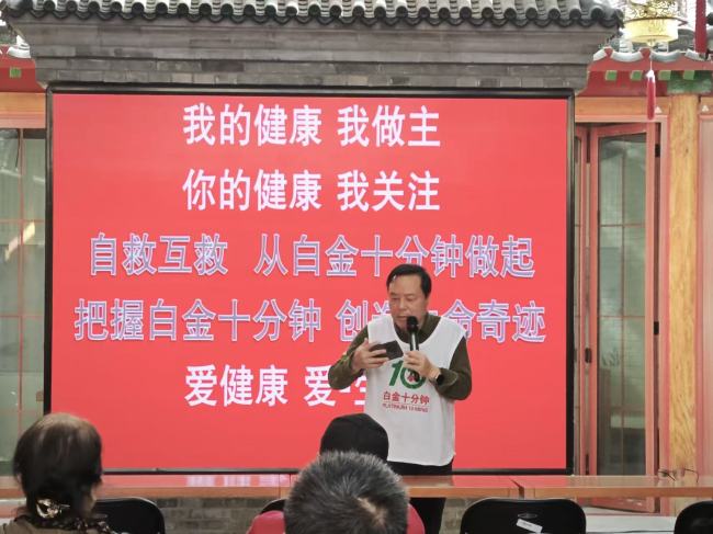 今天,由北京市应急管理局宣传动员处,北京市西城区应急管理局主办的“‘筑梦东城’应急志愿服务社区行”常态化活动,在北京市东城区北新桥街道和市级应急志愿服务社会队伍北京白金十分钟时效应急技术研究院共同组织下,于西仓门胡同的“新桥之家”举办。活动邀请解放军总医院第四医学中心首都地区军队急救中心主任医师、北京白金十分钟时效应急技术研究院专家委员会主任何忠杰教授,为大家宣讲心脑血管疾病意外---